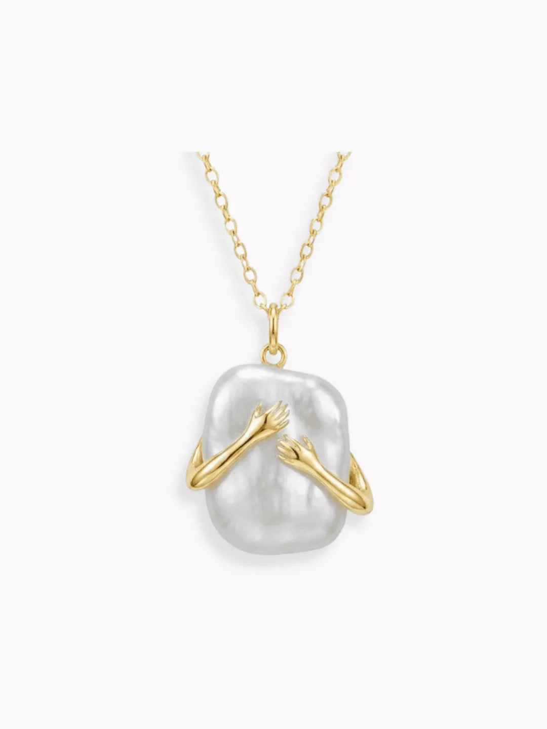 El collar “Abraza lo Imperfecto” de Swaravo celebra lo que nos hace únicos. Una perla barroca, irregular y auténtica, es sostenida por dos manos delicadas – como un susurro que dice: