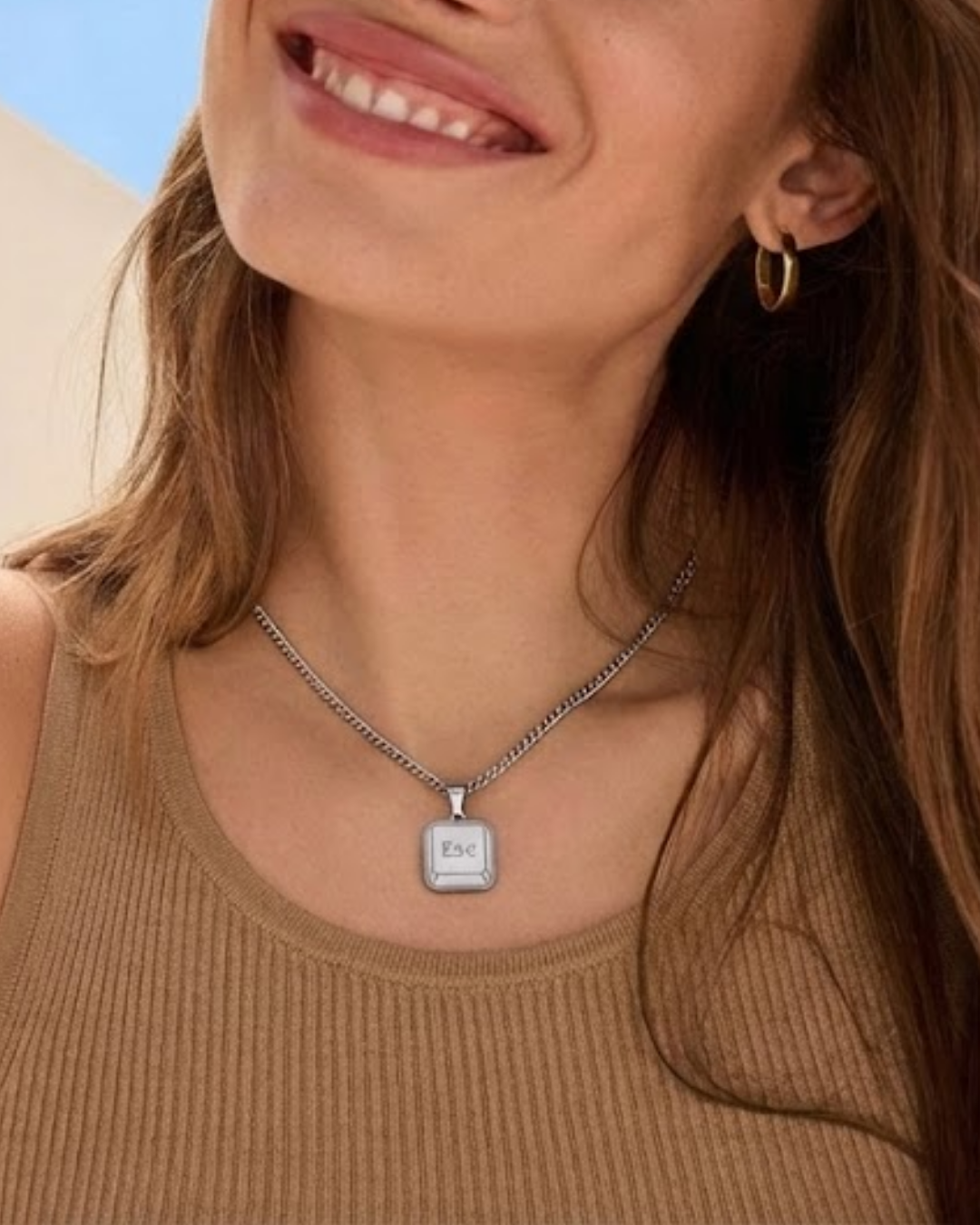 Die System Exit Halskette ist für Menschen, die ihren eigenen Weg gehen. Inspiriert von der ESC-Taste steht sie für freie Gedanken, Unabhängigkeit und leisen Widerstand gegen Anpassung. Ein minimalistisches Statement für alle, die ihr eigenes System erschaffen, statt einem zu folgen. Gefertigt aus poliertem Edelstahl – schlicht, mutig und kompromisslos individuell.